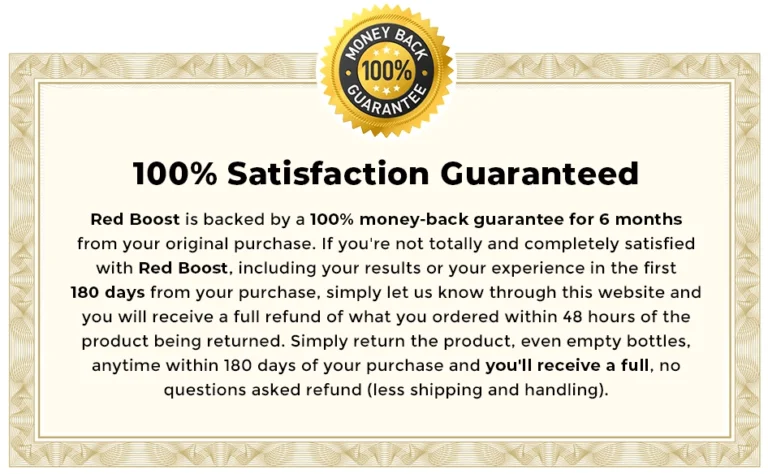 Red Boost offers a money-back for 180 days from the original purchase. If you’re not fully satisfied with Red Boost or your results within the first 180 days, contact our US-based customer support team for a prompt refund.